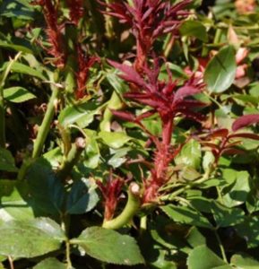 Any plants with suspected infection should be quarantined from healthy plants and monitored for continued symptoms. Pruning can be used to remove the eriophyid mite, which tends to hide near buds and leaf scars. “Dead-heading” roses throughout the season may prove effective but will be more effective with the subsequent application of horticultural oils to control any remaining mites.It is extremely important to not only remove but dispose of infected plant material because it can possibly infect nearby healthy plants. So any roots, leaves, and other parts of infected plants should be cleared from an area before installing new, healthy plants. A leaf blower is not recommended for removing such debris, as it may blow mites onto healthy plants; instead, debris should be removed by hand, placed in a sealed bag, and disposed of off-site. It is also recommended that you wait 1 to 2 months after removing infected plants before transplanting healthy ones.